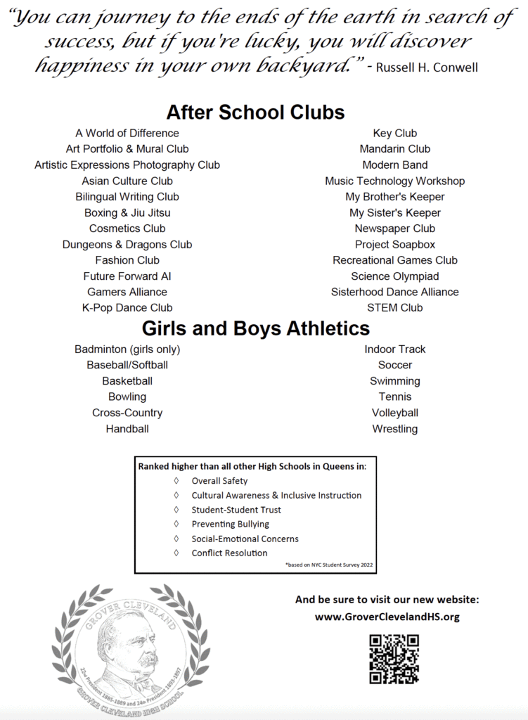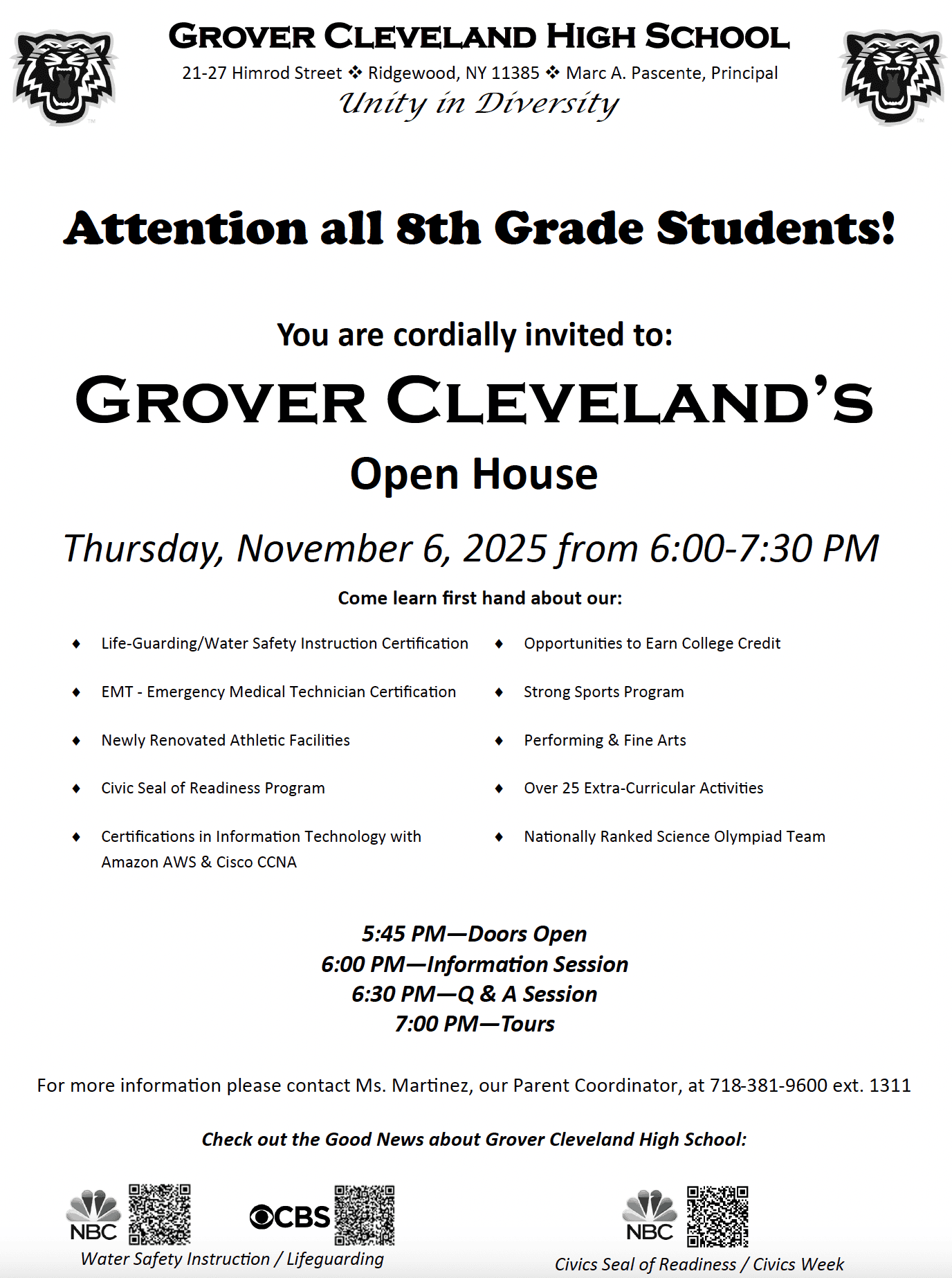 Welcome, to all of our students. We hope that all of you will embrace Grover Cleveland as your educational home!