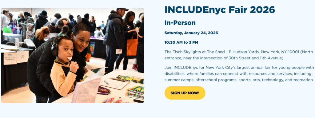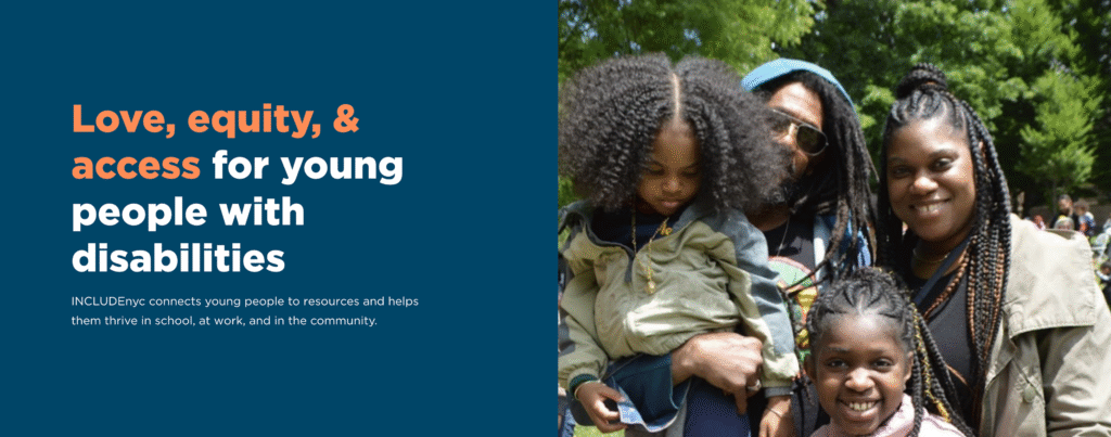 INCLUDEnyc’s mission is to promote positive futures and enhance the quality of life for New York City children and youth with disabilities, ages birth through 26, and their families. INCLUDEnyc empowers families of children and youth with disabilities with the knowledge, confidence, and skills to make informed decisions, effectively access and navigate systems and services, and advocate for themselves and other young people with disabilities and their families. INCLUDEnyc supports educators, youth workers, and other professionals to partner with families for successful, person-centered services, and to support and promote a family voice in the policy process.